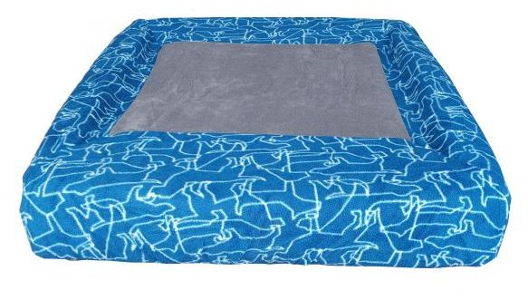 Blåt overtræk til klassiske hundesenge med Agriamønster trykt i lyseblåt på siderne. 100% polyester polarfleece.